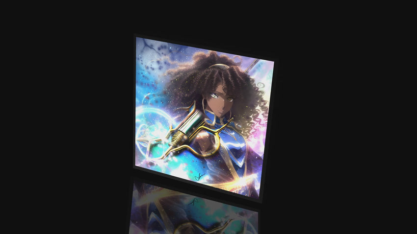 5. ZenDana Zodiac - Aurora Uaries, Major Arcana Abstract Art (Vol. 1 #5) Signed: Ignite your inner REBEL vibration within this charged piece personifying Aurora Uaries, The Pioneer and Chi avatar of the Aries Zodiac’s Ram-Aura. Through localized E Ecoteqk Designs infused with dynamic angles and rebellious strokes, ESJ Design Arts visualizes Aurora Uaries’ pioneering force and unwavering conviction. This signed limited edition canvas piece (8x8") is a COLLECTIBLE SERIES cornerstone for those who defy conventions and forge their path toward enlightened autonomy within the ever-emergent tapestry of life. A canvas ignited with a rebellious fire, this print immortalizes Aurora Uaries, The Warrior Hero/Pioneer and essence of the Ram—the Aura of Aries Zodiac Queen. The Rebellious Pioneer embodies a defiant stance against stagnation, symbolizing audacious vision and forging new paths within ZenDana Zodiac's intricate quest woven through constellations of consciousness and ecological awakening.