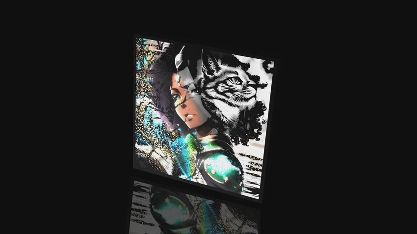 Embodied in swirling hues of vibrant intuition, this signed limited-edition print captures the potent essence of Oyayu Jaagru, The Seer-Strategist and Chi avatar of the Jaguar Zodiac Queen. Through localized Ecoteqk Designs, ESJ Design Arts translates Oyayu's essence affinity of GOOD ENERGY vibrations into a mesmerizing visual symphony. Owning this 8x8" artwork grants you a tangible link to strategic prowess and amplified inner knowing—a COLLECTIBLE SERIES piece merging celestial wisdom with ecological consciousness within the expansive ZenDana Zodiac multiverse.